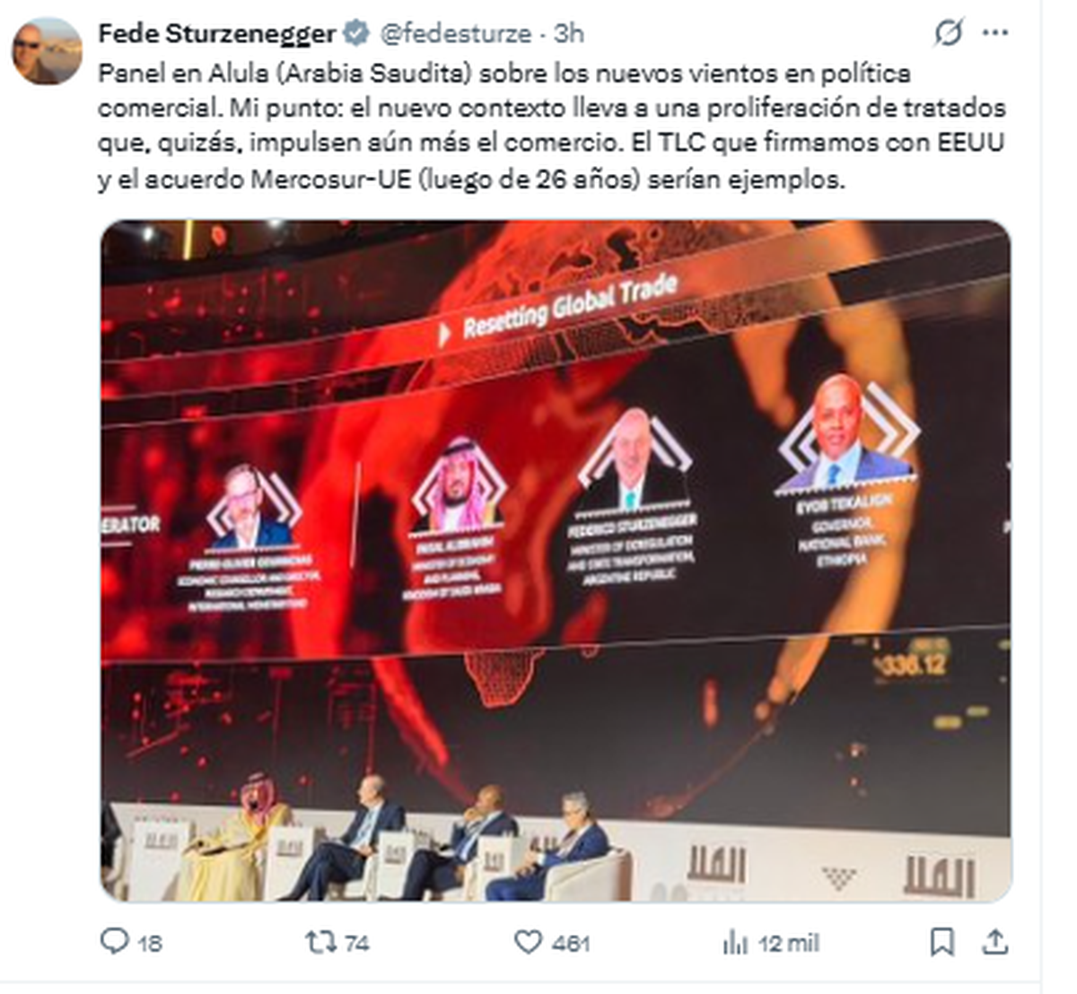 El ministro de Desregulación y Transformación del Estado, Federico Sturzenegger, se reunió este domingo en AlUla, Arabia Saudita, con la directora gerente del Fondo Monetario Internacional (FMI), Kristalina Georgieva, en el marco del trabajo sobre la agenda 2026 del Comité Asesor sobre Crecimiento Económico.